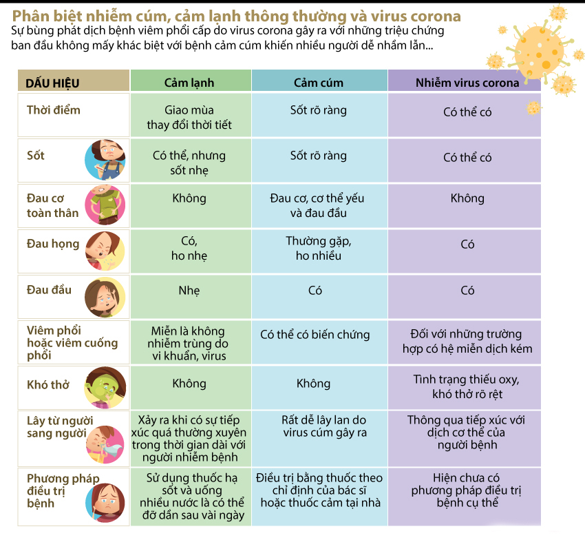 Do đều là các bệnh do virus gây ra, vì vậy, khi mới mắc bệnh cảm lạnh, cúm mùa và COVID-19 có một vài dấu hiệu tương đồng. Trong mùa dịch COVID-19, mọi người cần có kiến thức để phân biệt dấu hiệu khi nhiễm cảm lạnh, cảm cúm và COVID-19 để biết cách phòng bệnh và tránh hoang mang.